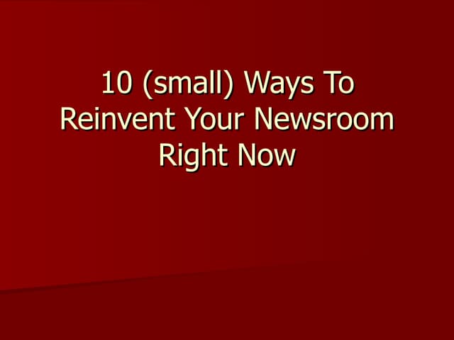 This is a great presentation. Details some really simple and some more complex things that you could start doing today if you got your newsroom excited about them. -